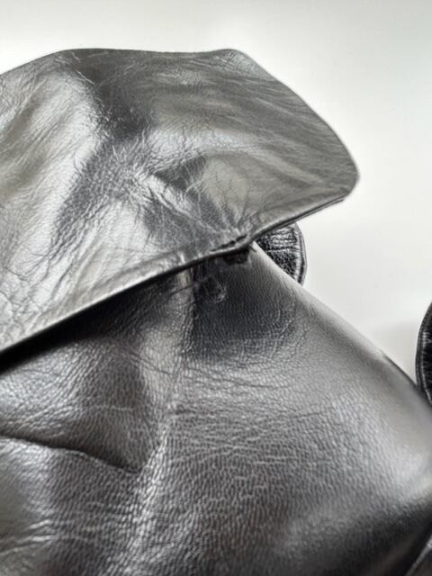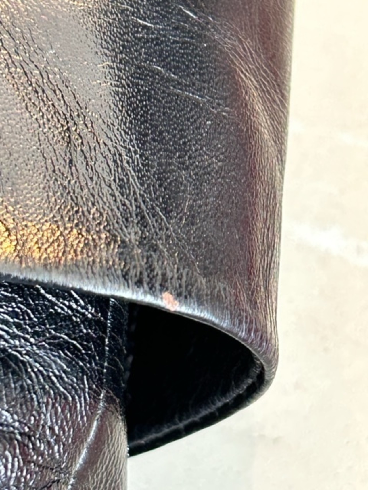 左足の折返し部分のレザーが小さく剥げています(画像8枚目)