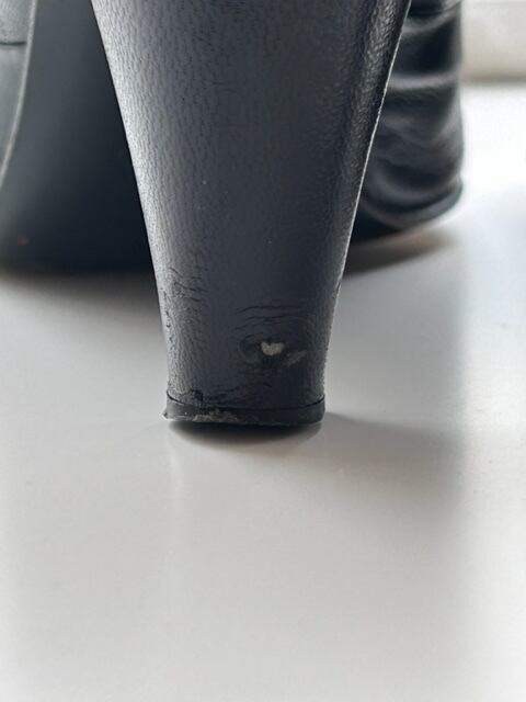 左足のヒールのレザーがめくれています(画像7枚目)